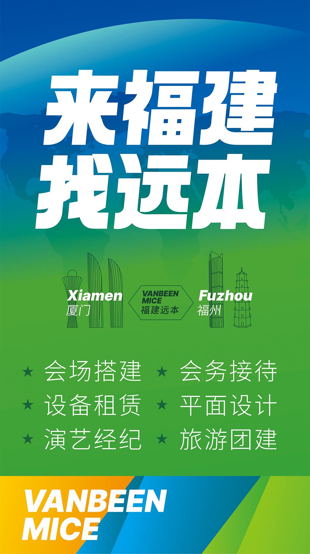 廈門遠本成立于2013年,是一家集策劃設計、落地搭建以及會議接待等全案服務的DMC公司。公司擁有LED屏幕、燈光音響、木作工廠等專業(yè)舞美設備,擁有一批專業(yè)穩(wěn)定的策劃設計和會務接待團隊,能夠快速、精準地為客戶提供優(yōu)質(zhì)的策劃、設計、搭建、接待等服務。公司已服務過華為、阿里、麥當勞、中國移動、埃克森美孚、興業(yè)銀行、招商銀行、華潤三九、齊魯制藥、萬邦制藥等國內(nèi)外知名企業(yè),并成功入選中國國旅、中旅、康輝國旅、錦江國旅、中智商展、墨馬傳媒等國內(nèi)知名PCO公司供應商庫。